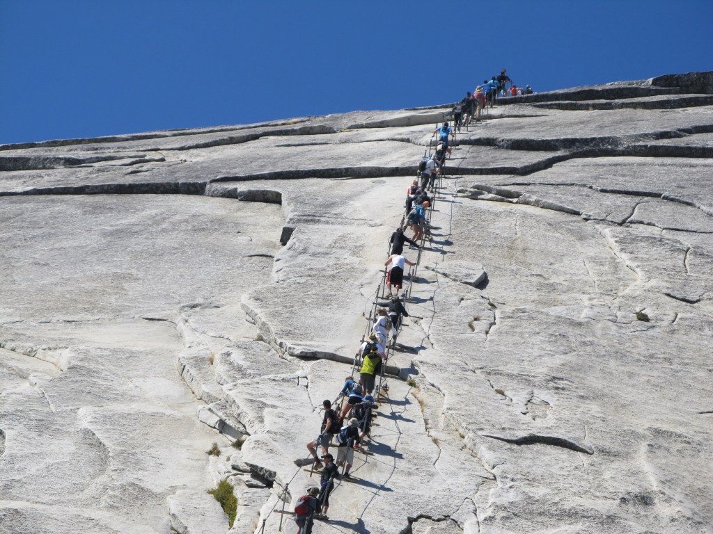 As I made my way up through the tree line, it was beautiful to see the redwoods through the area and different variations of granite cliff. Yosemite is a remarkable park and you can easily see why national parks came into existence because of this area. As I got to the top, I finally came to the large granite stone that is slightly before Half Dome. It’s stunning to look at, especially with very little people around. When I reached the final area, I looked up at the cables and lying underneath was a massive pile of gloves. It seemed that after coming back down from Half Dome, hikers would leave their gloves as almost a sign of gratitude for the hike. I took a look at the cables and thought long and hard about where I was. As I put my gloves on, I started my ascent up the back side of this amazing site. Luckily there were wooden platforms that gave me better footing as I walked up the slippery granite side. Staring up, I questioned how many people do this hike. The cables took some energy and I had to stop several times, including to let people pass down that had already been to the top. I reached the top and looked down at the valley floor. What an unbelievable view of the entire park?! A sense of accomplishment rushed over me as I reached my final destination. I didn’t conquer Mount Everest, far from it. What I did do, was prove to myself that when I set out to do something, I can persevere and get through it.