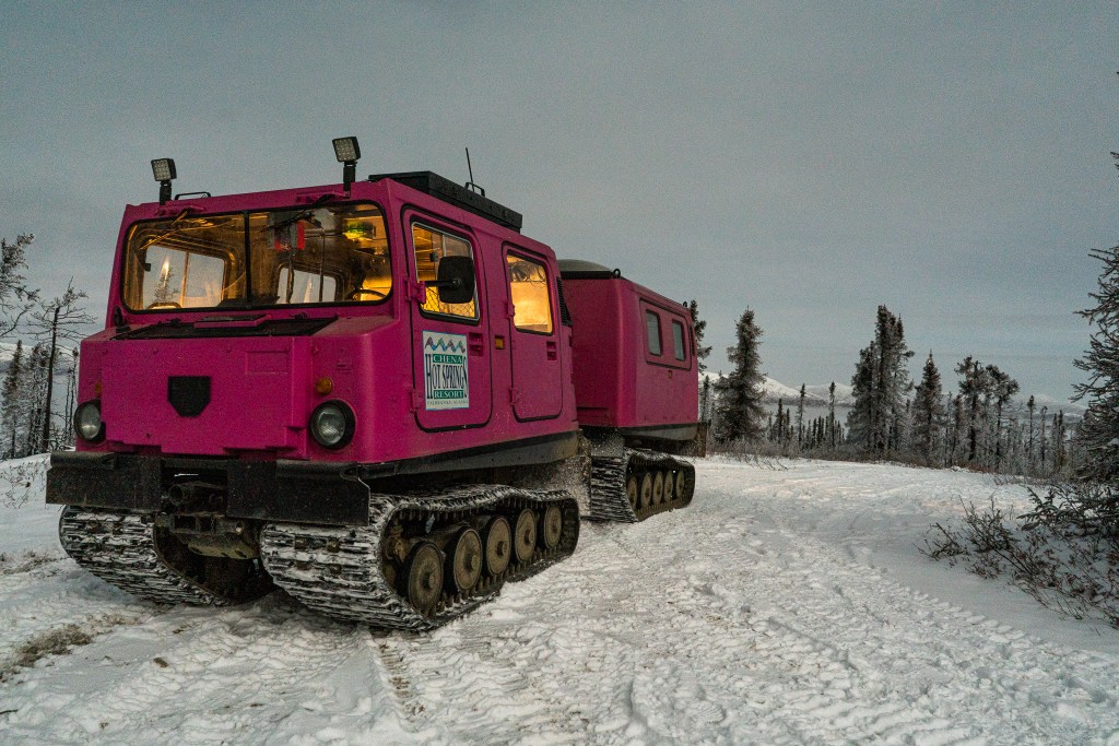 Northern Lights Tour: We met at the activity center at 9:30 and it went until 3:00am. They take you up to the top of Charlie’s dome. The vehicles that bring you up are slow and have large tracks on them to get through the snow in the thick of the winter. The ride up and down were both pretty bumpy, but nothing too overwhelming. When you get to the top of the dome, they have yurts that are nice and warm and refreshments for you to enjoy as you wait for the northern lights to show. Our night was sadly a bit cloudy so we were only able to the see the lights through a camera lens. The beautiful green ribbons ever so gently intertwined with the clouds in the sky. A fire was made to keep everyone warm. Even though it wasn’t our perfect scenario of the northern lights screaming through sky at us, it was still pretty cool to see them. Even if it was only through the lens of a camera! It was a great trip and we would recommend it, just hope that you get the weather to cooperate with you!